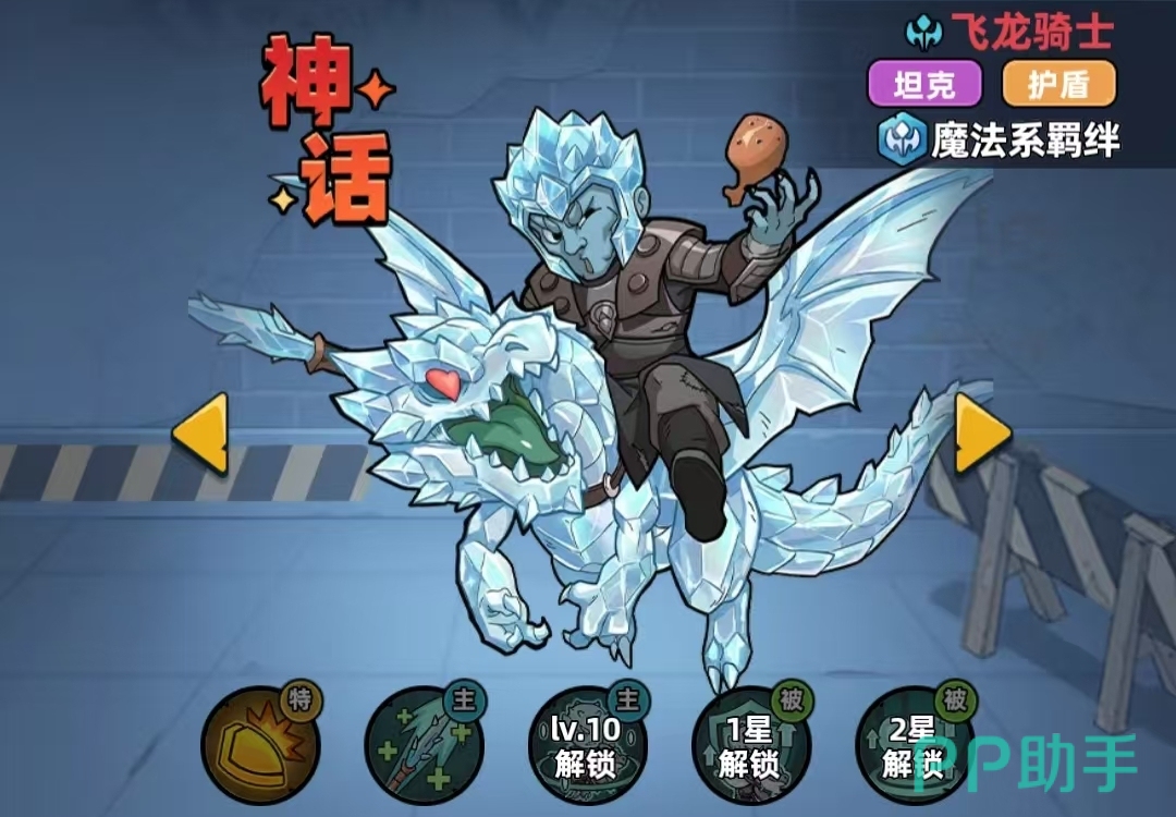 飞龙骑士是当前版本中稀缺的魔法向坦克型幸存者,其战技可为目标附加“魔法易伤”效果,显著提升全队魔法伤害命中收益,与忍术大师形成天然配合体系。开启大招后,将依据自身当前生命值比例生成一个持续60秒的高额护盾,提供稳定生存保障,适用于高难度副本前排承伤与团队保护场景。