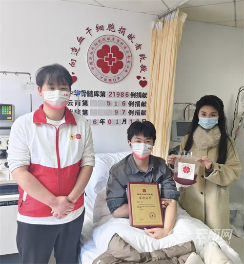 云南网讯(记者 彭锡)1月13日,记者从昆明医科大学第一附属医院获悉,该院第一临床医学院本科学生鲁凡(化名)成功捐献330毫升造血干细胞混悬液,成为全国第21986例、云南省第516例造血干细胞捐献者,为一名素不相识的血液病患者送去生命希望。