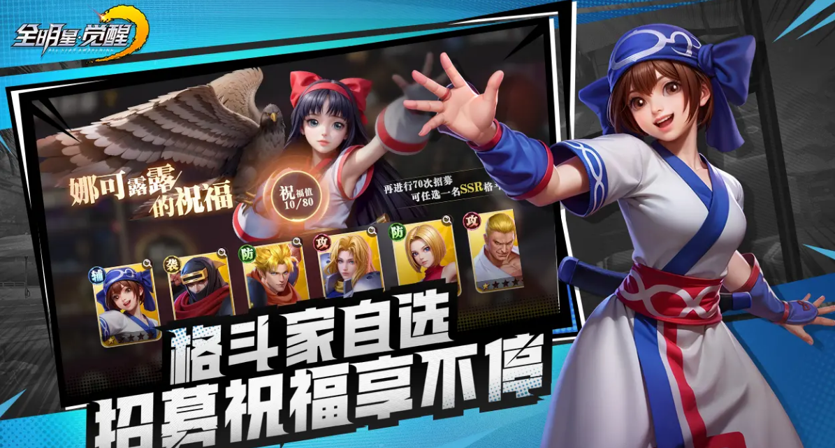 根据小编的了解,这款游戏中带来的格斗世界元素很是丰富,而且为小伙伴们集结了拳皇、侍魂、合金弹头等超经典的IP角色,如八神庵、不知火舞等都是其中之一,大家更是可以直接化身成为时空指挥官,在沉浸式3D格斗之城内展开趣味的冒险。