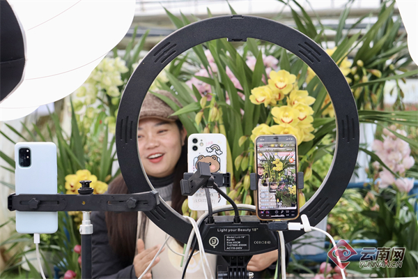 “家人们看这盆‘黄金岁月’,花色正、花序多,过年摆在家里特别大气!”在不远处公司的专属直播间内,主播洪亮的声音穿透屏幕,她熟练地转动花盆,360度展示着兰花的姿态。凭借柔美的粉色与时尚气质,“爱恋”系列在直播互动中频频被年轻粉丝点名询问,已成为吸引新消费群体的“流量密码”。