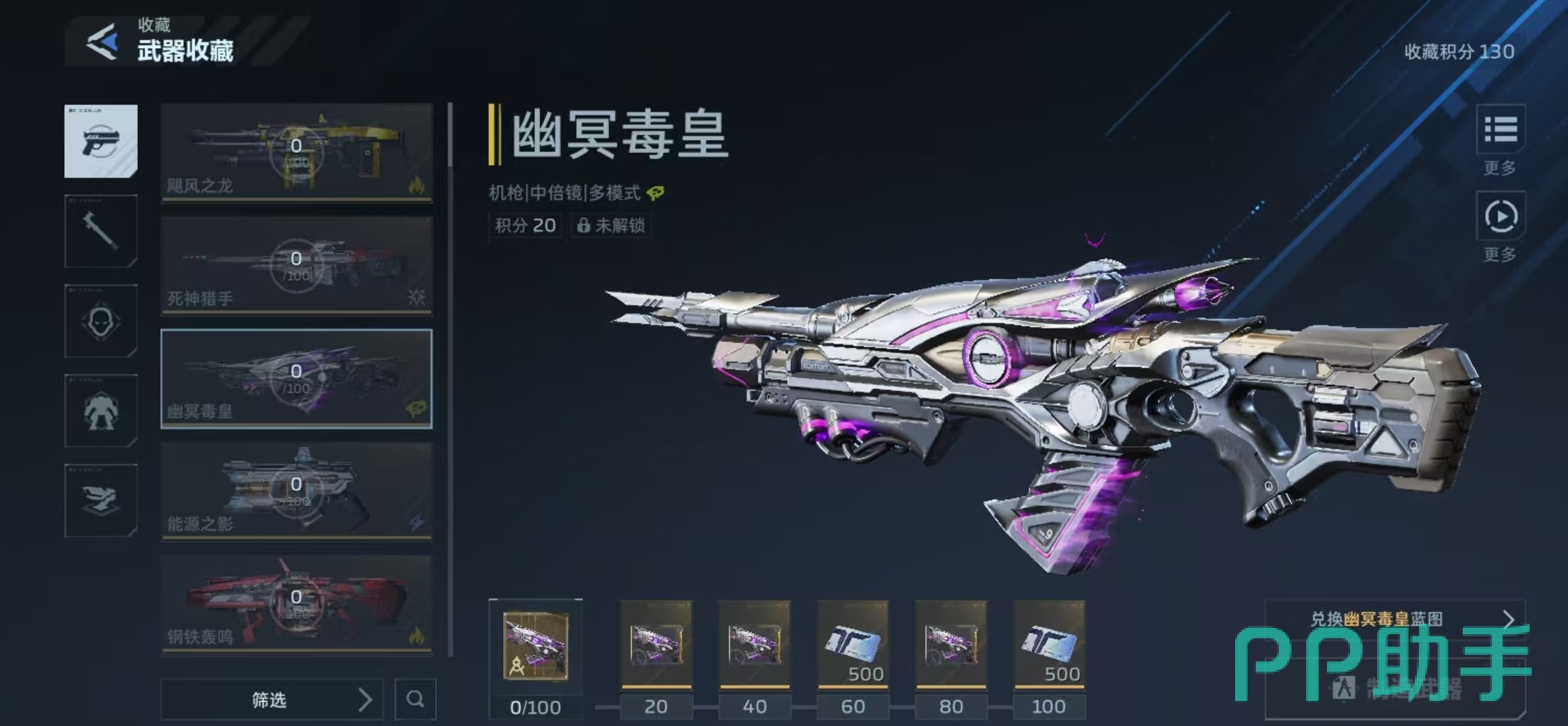第二款死神猎手属于射手步枪类型,它的特点是穿透攻击能力极强。可以发射出死神之光,缓慢向前飞行并造成高额范围伤害,射击的子弹可穿透目标,无穿透上限,这样在攻击多个目标时也能轻松打出高额的穿透伤害。第三款幽冥毒皇属于机枪类型,可以在机枪和榴弹枪之间进行切换是自身的优势。最多可以储存10枚榴弹,榴弹命中敌人后会留下毒池,对进入毒池的敌人造成持续伤害,并降低移动速度和攻击速度,这样在一些防守战斗中也可以打出非常不错的效果。在切换成机枪模式下,可通过命中敌人恢复榴弹,这样两个模式不停切换,以是用更多的战斗需要。