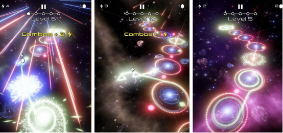 以节奏驱动为核心机制的太空飞行游戏。背景音乐节拍实时影响飞船加速度曲线,玩家需预判音轨变化完成跃迁时机判断。全作含32个手绘风格关卡,每个关卡配置独特引力场分布、可交互跳板阵列与多层障碍结构。飞船形态切换不改变基础操控逻辑,但会显著影响惯性滑行距离与转向响应时间,形成策略性选择空间。