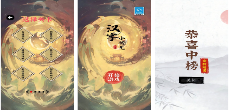 以科举文化为叙事线索,设置“童生试”“乡试”“殿试”三级进阶体系。每个阶段对应不同难度的汉字任务:初级侧重独体字与基础合体字拆分(如“林”“森”),中级引入多音字辨析与通假字识别,高级关卡要求解析形声字声旁与形旁的功能分工。水墨晕染界面配合毛笔书写动效,强化沉浸式学习体验。