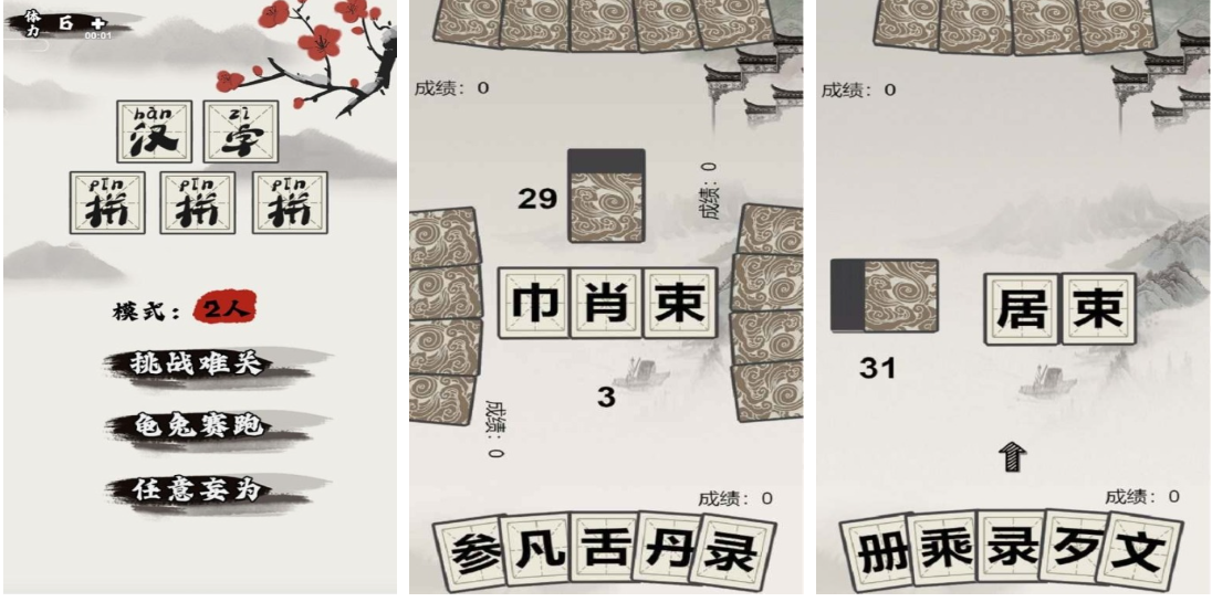 创新性地将汉字部件转化为可交互卡牌单元,每张卡片标注该部件的读音、释义及常见组合范例。玩家需在限定步数内完成目标汉字的拼合或逆向拆解,双人对抗模式支持实时比拼拆解速度与准确率。美术风格采用宋版刻本纹理与青绿山水底纹,视觉语言高度契合汉字文化语境。