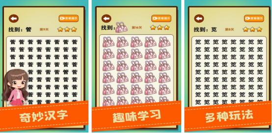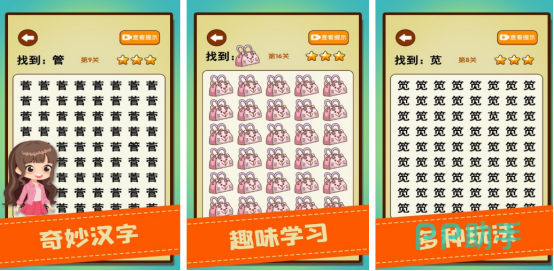 深度挖掘汉字形义特征,聚焦于形近字辨析这一传统文化认知难点。游戏将“日”与“曰”、“己”与“已”“巳”等易混淆字形置于同一画面,通过高精度排版呈现细微笔画差异。玩家需在限定时间内定位并点击异字完成通关,持续训练对汉字结构的敏感度与快速识别能力。
