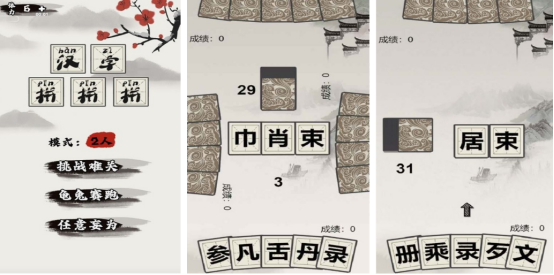 围绕汉字构形规律展开,融合拆解、组合、重构三种核心玩法。初始界面随机展示若干偏旁部首或独立部件,玩家需在倒计时内将其自由拼合为规范汉字。系统自动校验字形合法性与常用度,涵盖简体字标准库,强化对汉字生成逻辑的理解与记忆。