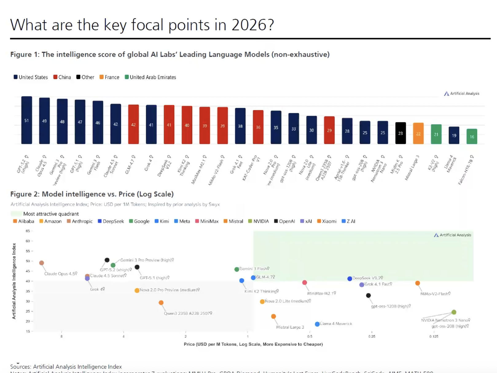 在模型能力方面,熊玮判断,中国模型的平均智能水平与美国最先进模型之间的差距正在逐渐缩小。她表示,在实际落地过程中,企业会关注单位模型的价格和性价比,而不是单纯追求最强性能。她认为,美国最先进的模型成本较高,而中国模型在可负担性方面具有优势,未来可能会看到更多中国模型走向海外市场。