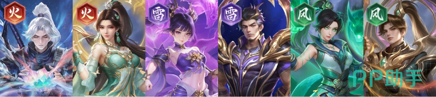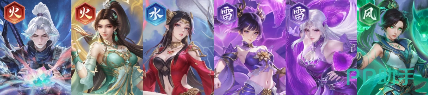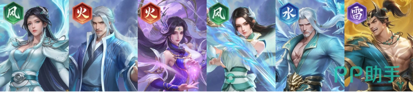 阵容组成:云韵+药老+任意火系角色*2、风系角色*2。