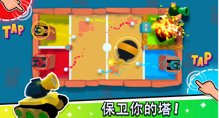 《坦克坦克》是经典本地四人射击对战手游,支持无网络环境运行。每位玩家操控一台坦克,在固定擂台内移动并自动发射炮弹,强调走位预判与节奏把控。游戏内置多张风格迥异的地图,配合紧凑的战斗节奏与拟真音效,还原复古街机对抗乐趣。