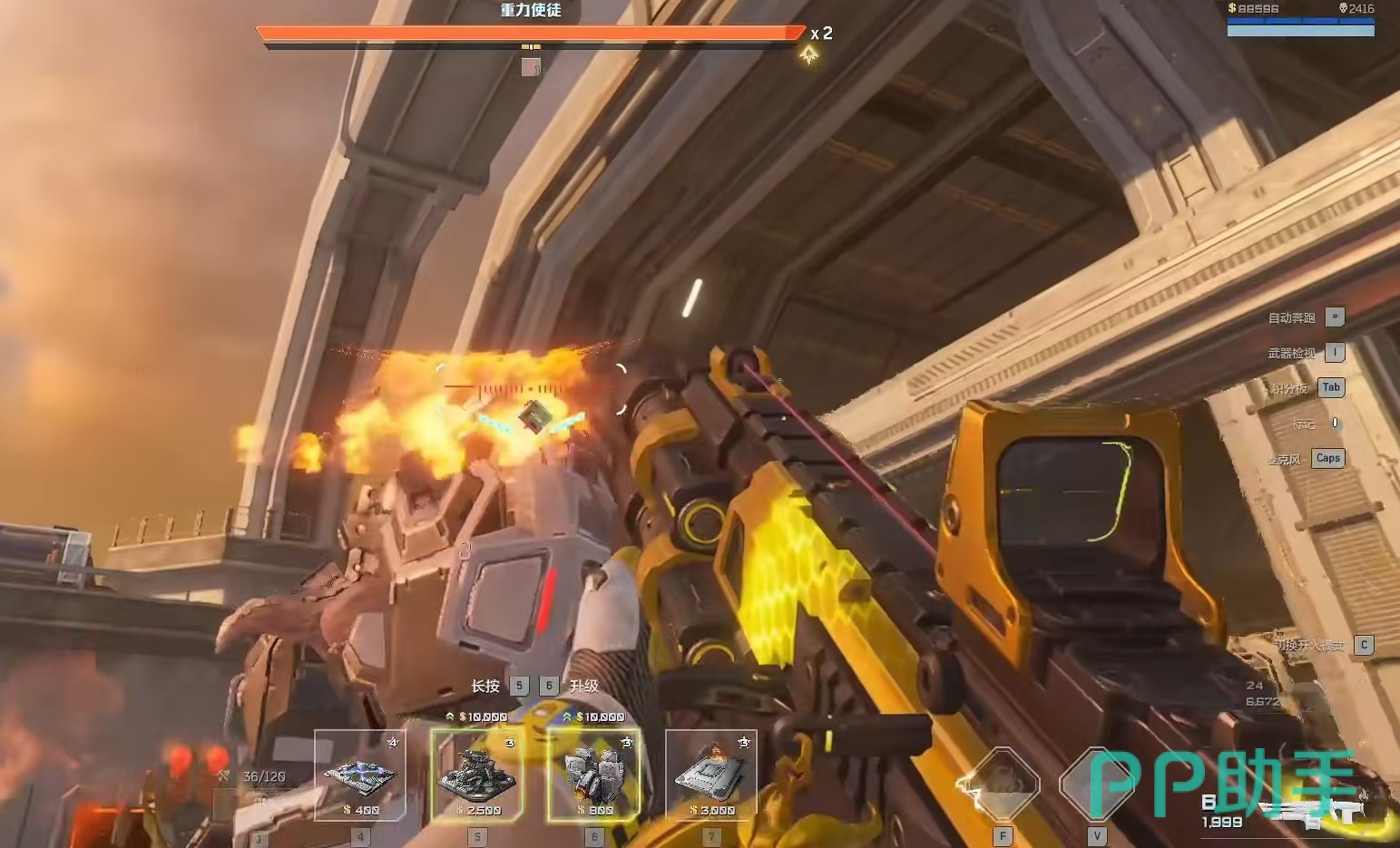 另外还有一个比较重要的技巧提供给大家,就是要破坏身体部位。BOSS身体的功能都集中在他的身体部件中,这些部件可被射击破坏,在成功破坏后,将短暂失去对重力的掌控。BOSS手臂处的部件破坏时会提示重力装置失效,这时可以通过巨型弹板将它弹飞,失去装置能力的重力使徒和普通小怪一样,会受到巨型弹板的影响,直接被推到中心深渊实现秒杀。