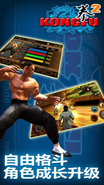 以李小龙为原型的角色建模与动作捕捉高度还原真实武术逻辑,打击感扎实,受击反馈明确。关卡设计强调攻防转换与节奏控制,需结合走位、格挡与反击策略应对不同敌人。角色成长体系包含等级提升、属性加点及技能解锁,场景物理表现亦增强临场沉浸感。
