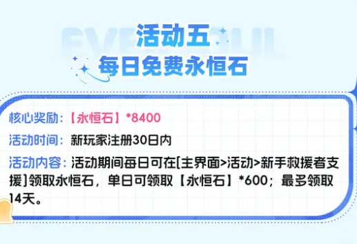 在首次踏入这个游戏的时候,资源加载完毕就可以获得惊喜,通过邮件可以直接领取到十张永恒召唤券,这可是新手前期抽卡的关键资源,能够帮助你快速组建起一支属于自己的精灵队伍,一同开启冒险之旅。新玩家在注册后的30日内,每天都会有一份免费的惊喜,只要在主界面的活动处找到新手救援,每天登录就能领取六百颗永恒石,这个福利可以领取14天,永恒石可在游戏中的用途很广泛,它可以用来购买珍贵的游戏道具,还能兑换各类召唤券,帮助你获得自己想要的精灵。