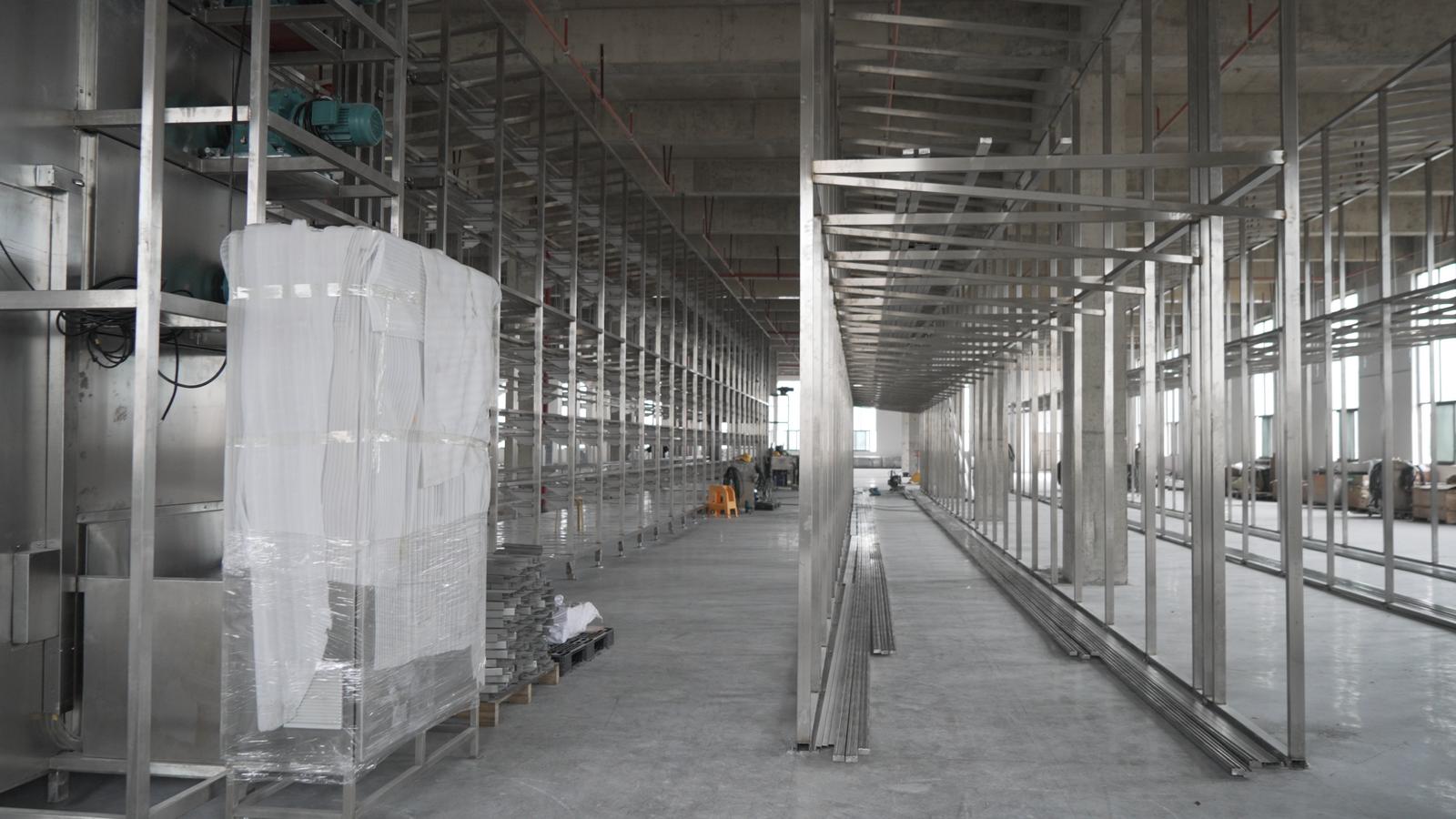 近日,记者来到位于文山三七产业园区的文山御美堂生物技术开发有限公司,鲜粮制品生产基地的建设正热火朝天地进行中。厂房宽敞明亮,连接一二楼的输送机高高矗立,部分生产线已铺设完毕,通风管、淘洗桶等设备则静静等待安装。
