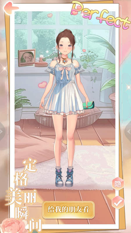 本作采用纯正二次元美术风格,人物立绘与服装设计均体现鲜明的日系审美取向。玩家可自由切换古风、现代、校园、节日等主题穿搭,并支持发型、发色、配饰、妆容等多维度自定义。每套完成造型将由系统智能评分,达成高分可累积星星,用于解锁限定服饰图鉴与稀有配件。