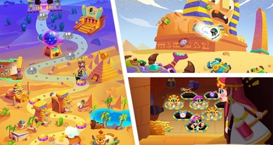 本作以古埃及文明为背景,玩家将跟随主角深入广袤沙漠,逐步揭开身世之谜。关卡设计融合历史文化元素:修复断裂的石像并完成拼接还原、依古法研磨谷物烘制面包、驱除侵蚀狮身人面像的甲虫群等。卡通渲染画风清新明快,色彩饱和度高,异域建筑、图腾纹样与气候光影细节考究,寓教于乐,让知识获取自然融入闯关节奏。