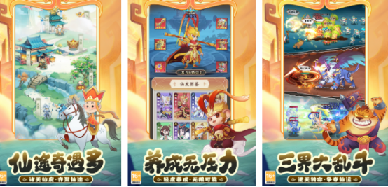 基于经典西游题材打造的休闲向养成手游,画风清新明快,地图场景色彩饱满,融合敦煌壁画纹样与水墨晕染效果,传统文化元素贯穿全程。玩法包含离线推图与全自动挂机系统,玩家下线后仍可持续积累经验、金币及材料,回归即领收益,节奏舒缓适配碎片时间。