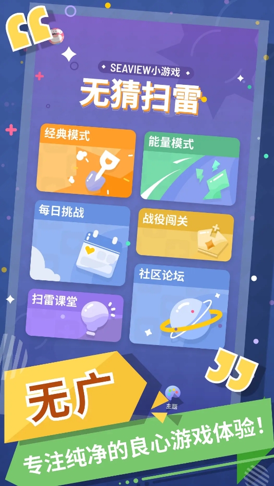 基础模式完全兼容经典扫雷规则,同时拓展能量模式与战役闯关两大原创玩法线:前者侧重连续推理与手速协同,后者按章节递进设计谜题结构,每关均有独特地形约束与隐藏逻辑条件。内置“扫雷课堂”模块,系统梳理常见开局套路、数字组合判读技巧及高效标记策略,助力新手快速建立解题思维框架。