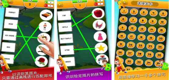 面向全年龄段英语学习者设计,涵盖休闲模式与限时挑战双轨体系:休闲模式无时间压力,专注图文匹配与词义理解;极速模式限定60秒内完成指定数量的单词-图像连线,考验反应力与词汇熟悉度。游戏采用清新卡通美术风格,题库覆盖动物、食物、自然、职业等十余类主题,强调视觉联想与语义关联,帮助建立牢固的记忆锚点。