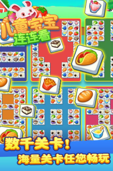 以水果、薯条、汉堡等儿童熟悉的食物图案为核心元素,设计匹配消除玩法。规则简明:连接两个相同图标即可清除,需在限定步数或时间内完成整屏清除目标。关卡数量超过三千,难度逐级递进,兼顾视觉搜索、短时记忆与手眼协调能力训练,界面清爽无干扰,操作响应灵敏,适合碎片化时间使用。
