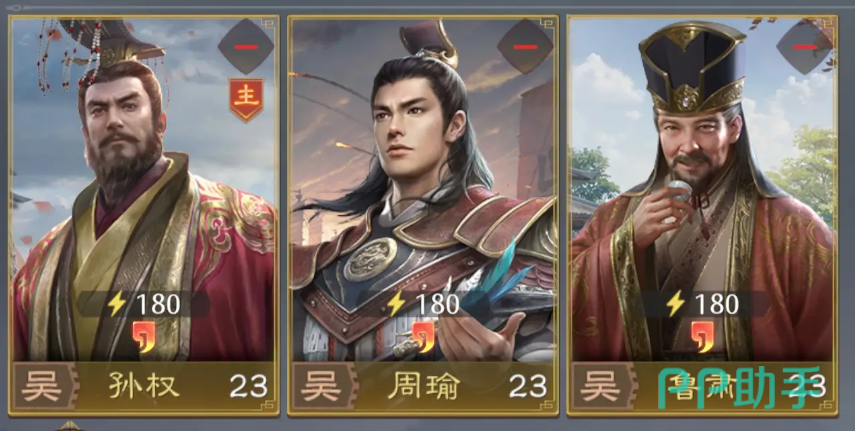 第二套阵容为“吴国弓兵爆发流”,延续孙权主将定位,但转向阵营协同方向,采用周瑜、鲁肃组成吴国专属弓兵体系。该配置依托吴国阵营特性,强化谋略型武将联动效率。孙权携带怒气增益类战法后,可加快技能循环节奏;其造成伤害的同时触发兵力恢复效果,进一步延缓战力衰减曲线。周瑜的灼烧效果提供稳定DOT(持续伤害),与孙权的瞬时爆发形成攻防一体的输出结构。