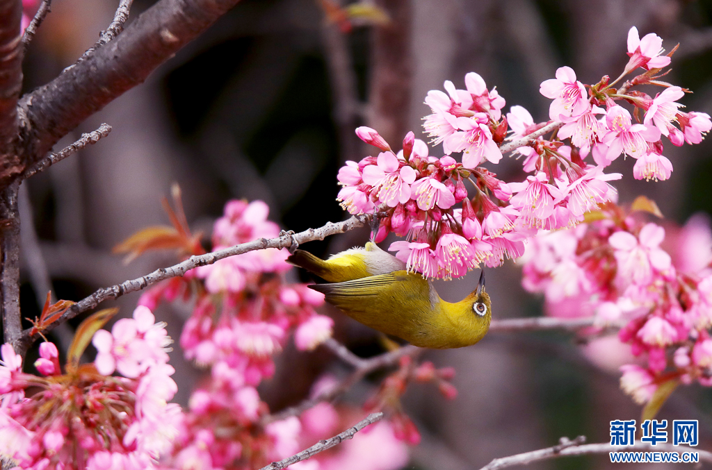 绽放的冬樱花(1月13日摄)。新华网发(马卫忠 摄)