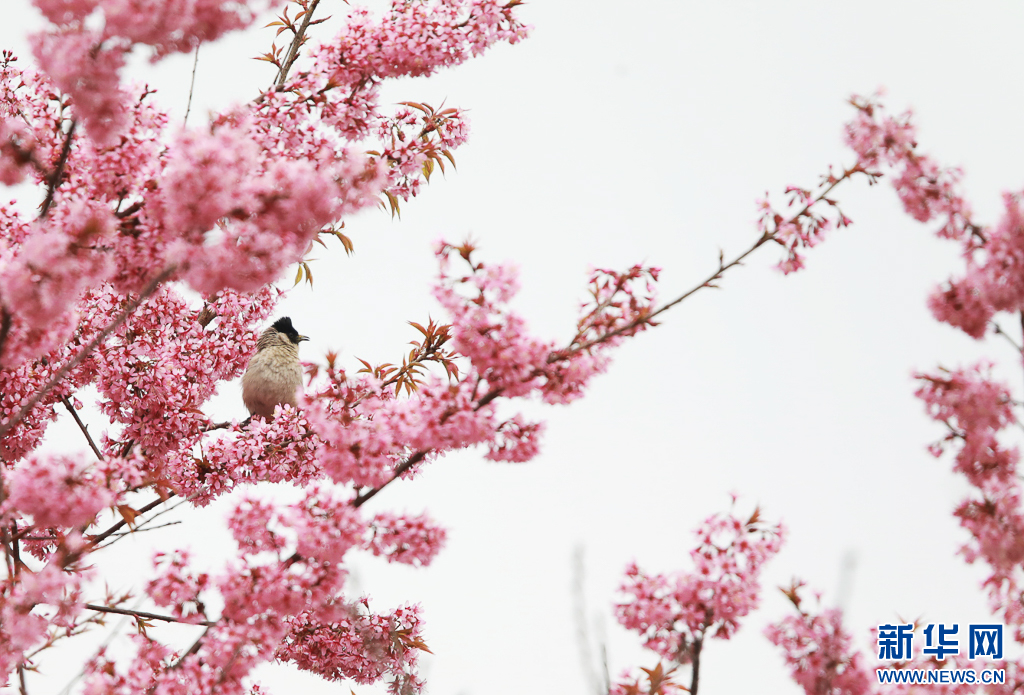 近日,云南省文山壮族苗族自治州丘北县八道哨彝族乡白脸山村的冬樱花悄然绽放。一簇簇粉红花团随风摇曳,引得鸟儿翩跹而至,或穿梭树梢,或驻足花丛,灵动雀跃的身影与烂漫樱景相映成趣,勾勒出一幅生机盎然的冬日画卷。(马卫忠)