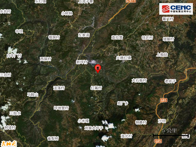 附近村镇:本次地震周边5公里内的村庄有韩家坪子、树茶、圆塘子、红石岩村、鱼塘坪子、老寨、杨奋田、大水井、王家坪子、红箐村,20公里内的乡镇有包谷垴乡、火德红镇、老店镇、龙头山镇、铅厂乡、新店镇、大水井乡。