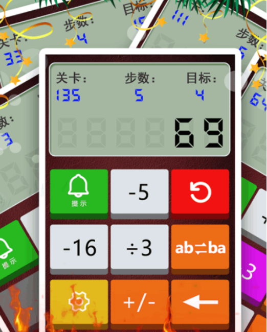 将实体计算器功能转化为解谜核心玩法,玩家需依据目标结果与初始算式,逆向推演按键顺序。操作界面模拟真实计算器布局,强调逻辑路径设计与步骤验证,有效培养低龄儿童的逆向思维与数感认知。关卡由浅入深,支持单步提示与重试机制,兼顾教学引导性与操作友好度。