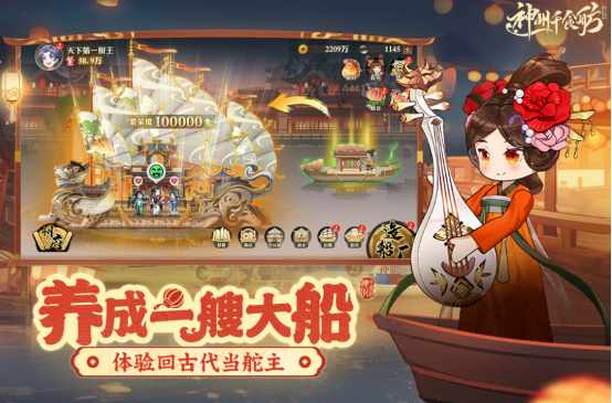 融合古风餐饮模拟与卡牌策略玩法,玩家执掌一艘航行于九州水域的美食方舟。通过采集地域特色食材、研习失传古法菜谱、招募身怀绝技的船员,复原并创新中华传统饮食文化体系。建筑系统涵盖妙香斋、百味坊等十余类功能场所,挂机机制保障离线资源稳定产出。