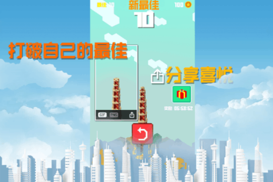 核心玩法聚焦于百层摩天楼的垂直堆叠挑战,操作机制类似实体积木平衡原理。屏幕顶部实时显示待放置构件,玩家通过按压时长控制构件尺寸,需严格遵循“下宽上窄”的结构稳定性原则,否则将触发坍塌判定并结束当前局。