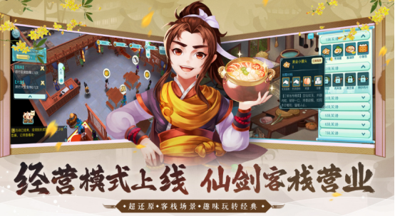 该作采用清新国风卡通渲染风格,重构《仙剑奇侠传》经典叙事脉络。在传统回合制战斗基础上,创新融合模拟经营玩法——玩家可亲手打造并运营“仙剑客栈”,解锁菜谱、招募伙计、接待江湖侠客,通过经营收益反哺角色培养。内置跨服社交系统,支持组队副本、师徒结契、帮派共建等丰富互动形式,强化长期游戏粘性。