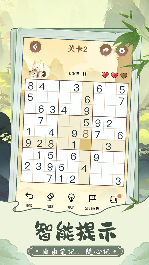 本作将传统数独逻辑与东方美学深度融合:界面融入祥云纹样、水墨底纹等国风视觉元素;背景音乐采用古筝、笛子等原声采样,营造沉浸式古典氛围;关卡系统覆盖四宫格至九宫格全难度梯度,并嵌入实时通关数据追踪功能,支持玩家复盘策略、优化解题路径。