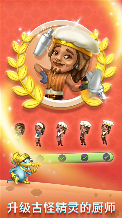 创新整合三重玩法维度:三消解谜驱动食材准备、烹饪流程模拟控制出餐节奏、角色外观系统关联成长进度。消除对象包括调味料图标、厨具轮廓及等级徽章图案,关卡障碍设计灵感源自经典“老鼠偷油”叙事,需在限定步数内清除干扰元素。每完成一单订单,即可获得对应风格的服饰碎片,用于构建专属厨师形象。
