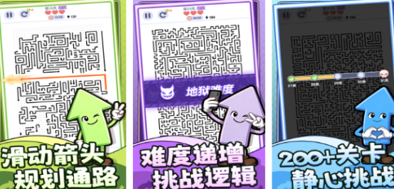 专注方向逻辑训练的策略型解谜游戏,目标为按指定坐标与朝向精准清除全部箭头标识。每关提供唯一最优解路径,但需综合分析箭头间相互制约关系、移动优先级及区域封锁条件。美术采用极简矢量风格,UI层级清晰,无冗余动画干扰思考节奏,适合追求纯粹逻辑挑战的玩家群体。