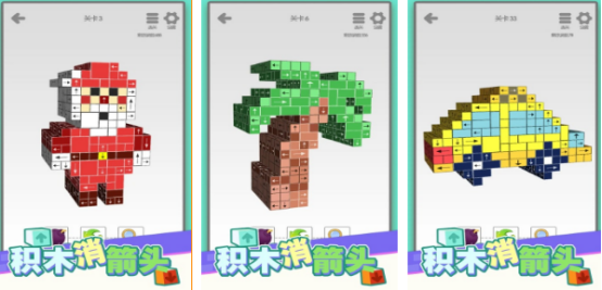 本作创新整合三维空间认知与方向逻辑判断。所有积木单元均带有唯一指向箭头,消除动作需严格遵循箭头指示方向触发连锁反应。支持自由旋转视角观察立体结构,关键解法依赖对隐藏路径的预判与多层箭头叠加效应的识别。关卡设计强调空间记忆与动态推演能力,是少见的将几何思维转化为操作反馈的消除类作品。