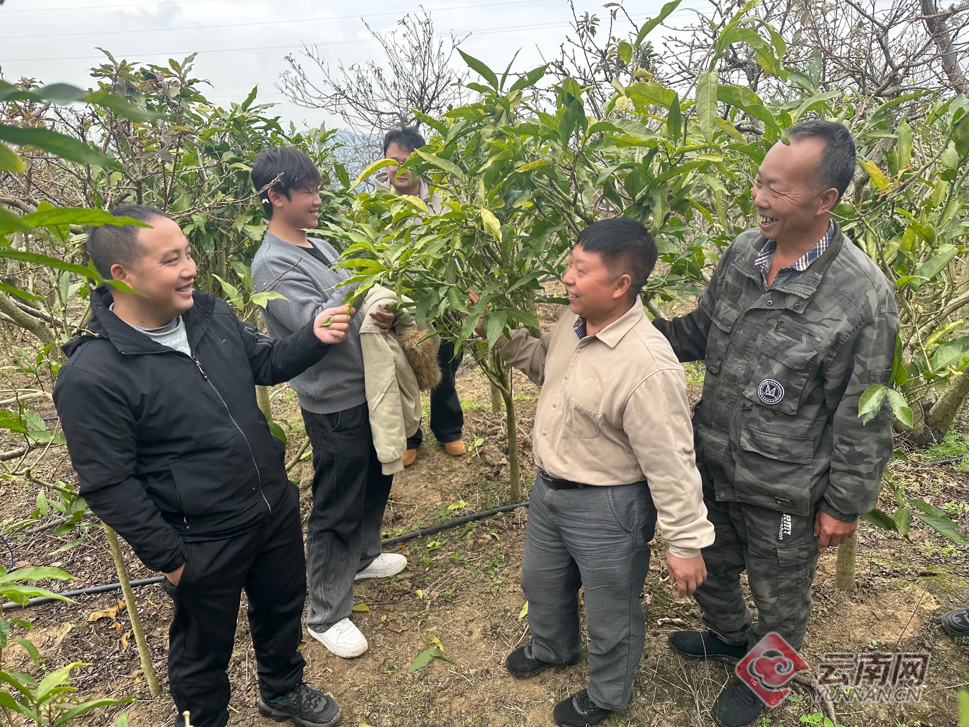 每到一处,专家团队都将资源考察与技术指导深度融合。在戛洒镇,农户围聚学习甜菜树矮化修剪技术;在建兴乡,专家指导刺老包肥水精准管理;在平掌乡,“香椿病虫害远程诊断”微信群实时响应农户需求。一系列科技服务举措让科研成果加速落地转化。