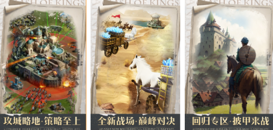 主打沉浸式中世纪领主养成体验,从零建设城堡、训练军队、管理资源,并参与跨服实时对战。采用统一服务器架构,支持PC与移动端无缝切换,全服玩家同台竞技。联盟系统深度整合,支持百人以上协同作战,涵盖攻城、守城、领土争夺等完整战争链条,强调长期战略规划与跨文明协作。