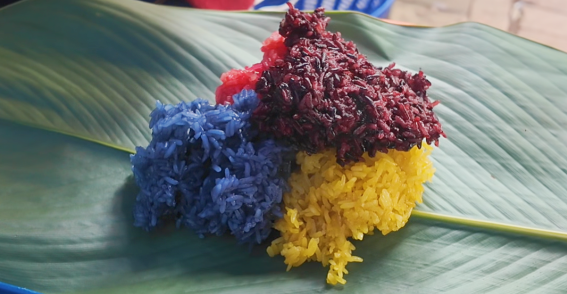 除了烧烤,现蒸热卖的米干、酸辣开胃的撒撇米线、色彩斑斓的糯米饭......