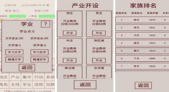穿越题材模拟养成类单机游戏,背景设定于明代社会。玩家可自主选择科举入仕、经商立业、习武从军等成长路线,参与联姻、育子、家族经营、军队训练等系统化人生事件,并深入朝廷政务体系,体验高度自由的古代社会角色扮演。
