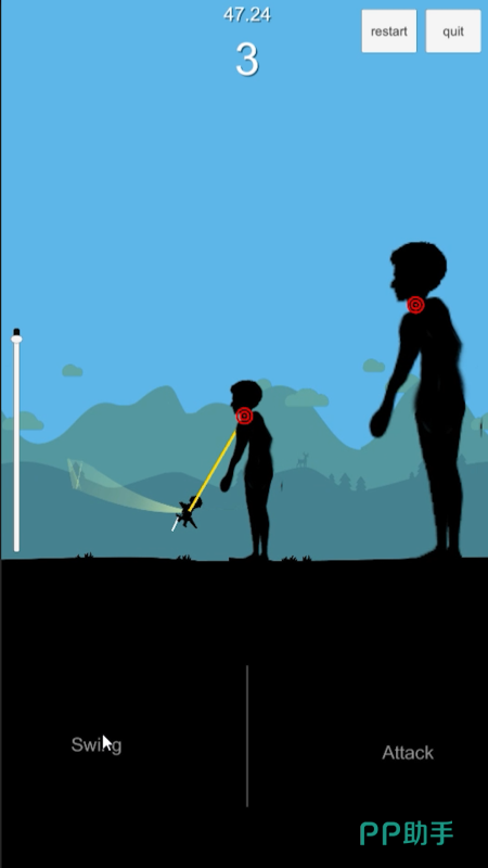 横向卷轴跑酷+轻度RPG元素融合之作。玩家在奔跑过程中实时切换近战武器或投掷道具,与随机出现的巨型目标展开周旋。角色模型细节丰富,动作帧数饱满;每成功击败一名巨人即可累积分数,达成特定数量后解锁新装备或技能分支,增强重复游玩价值。