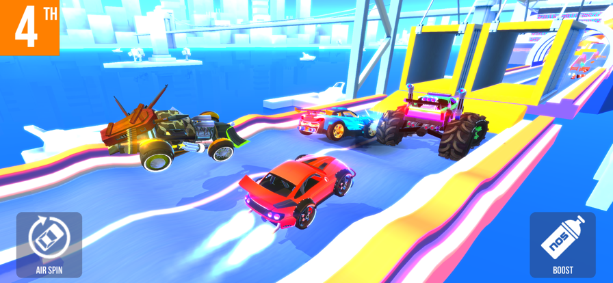 该作突破传统竞速框架,在基础驾驶操作之上融合跳跃腾挪、技能漂移、氮气拾取等动态玩法。赛道中随机分布氮气罐,收集后可触发短时加速爆发。玩家可在对局中发送预设表情包进行轻量互动,同时开放高度自由的车辆改装系统,涵盖外观涂装、性能模块及功能配件,满足个性化表达需求。