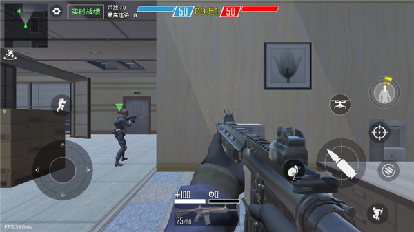 这是一款主打全球实时PVP的现代军事题材FPS手游。地图场景覆盖废墟基地、都市高楼等多种战术地形,适配不同性能终端的渲染引擎保障流畅表现。武器库涵盖电子脉冲弹、侦察无人机等前沿载具与装备,所有对战模式以击杀数为胜负判定标准,突出快节奏对抗体验。