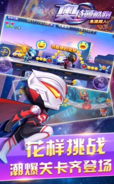 在传统跑酷框架基础上融入角色养成与剧情冒险要素。玩家通过收集金币与道具资源解锁新奥特战士,每名角色拥有独立技能树与外观变化。场景美术精细度显著提升,背景层次丰富,动态光影增强视觉纵深感。动作反馈与画面表现协同优化,整体完成度较高。