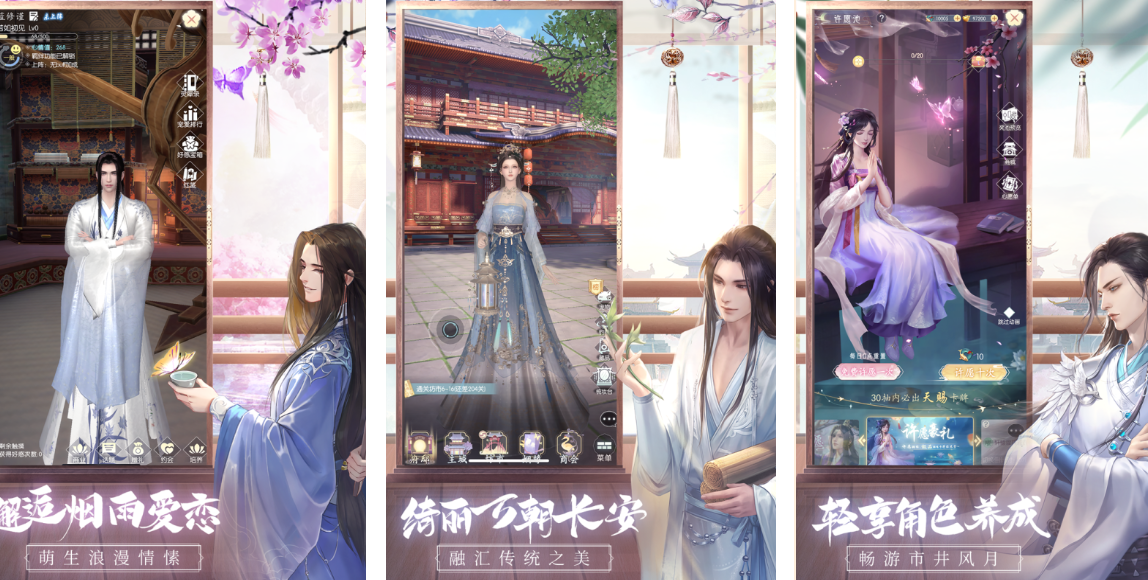 主打轻量化古风社交养成,采用水墨渲染引擎呈现江南园林式界面。核心玩法去数值化,以“晨昏定省”“节气开匣”“手札传信”等低压力行为驱动成长节奏。角色晋升依赖好感度与事件触发,无体力限制与强制在线要求。内置“群英夜宴”为回合制文会小游戏,考校诗词接龙与典故辨析能力;“星愿合成”系统融合二十八宿概念,玩家收集星图碎片解锁历史人物轶事,实现知识性与趣味性统一。
