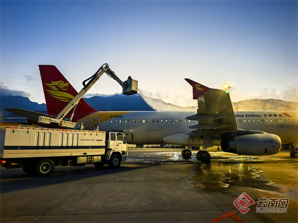 云南空港飞机维修服务有限公司生产控制部经理王文杰介绍,为应对低温雨雪冰冻天气对航空运行带来的挑战,云南空港飞机维修服务有限公司于每年8月启动冬季运行准备,包括制定极端天气保障预案,加强人员资质管理、设备维护和流程演练,提升应急处置能力,保障航班安全准点运行。丽江、迪庆、昭通等冬季除冰保障任务较为艰巨的机场,更是做足了准备,提前进入“战备”状态。