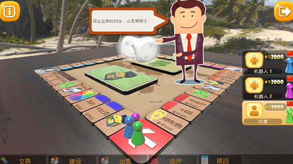 采用全3D建模呈现棋盘与角色,基础玩法仍以掷骰驱动角色沿路径移动。途经地块可购买并建造住宅、商铺、写字楼等多级建筑,提升租金收益。对手踏入己方地产即触发过路费结算,金额随建筑等级递增。胜负判定围绕资产净值展开,目标是通过地产扩张、租金压制与现金流转,最终使对手破产出局。