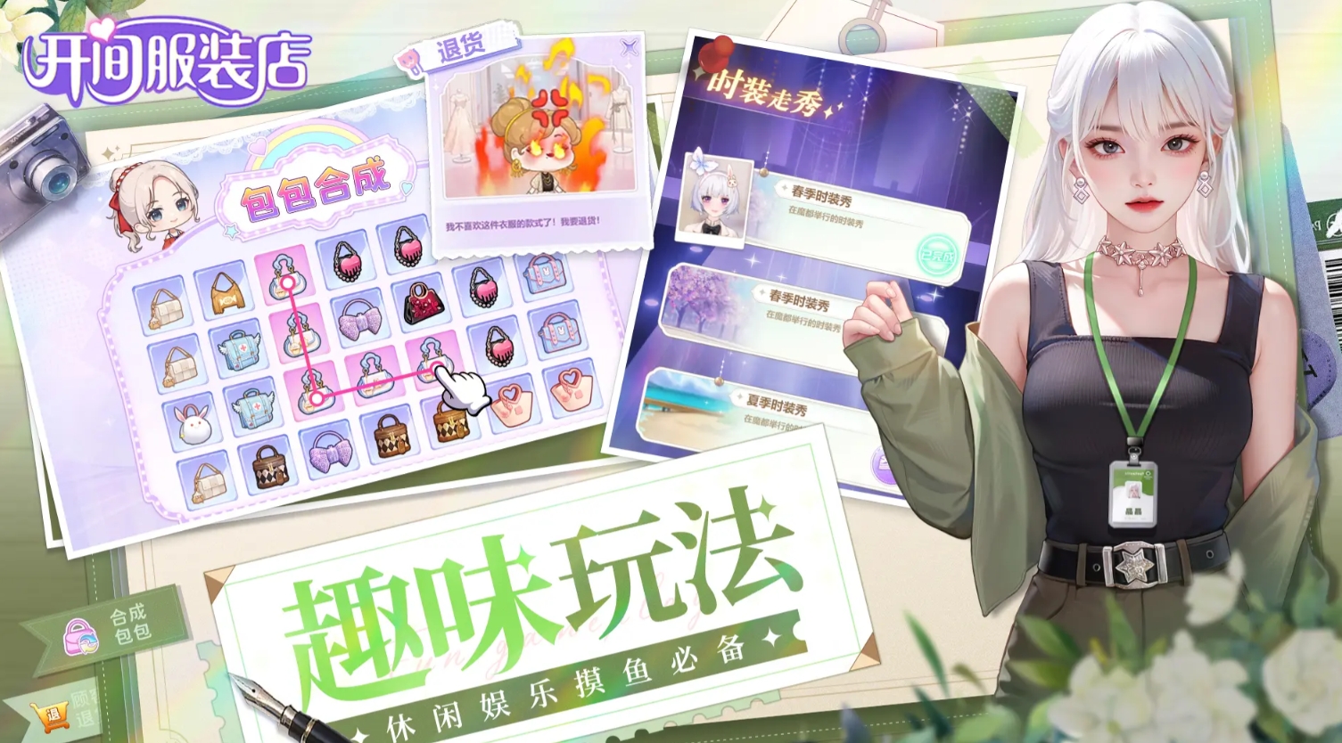 游戏构建了结构清晰的时尚零售体系:每件单品均标注风格标签(如甜酷、法式、森系)与价格区间,玩家需在预算约束下,为不同需求的顾客匹配协调且高满意度的整套穿搭。任务系统涵盖节日主题企划、VIP客户定制、限时快闪活动等,强调搭配逻辑与商业决策能力的双重训练。