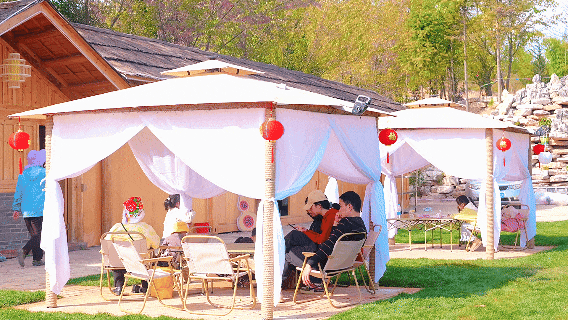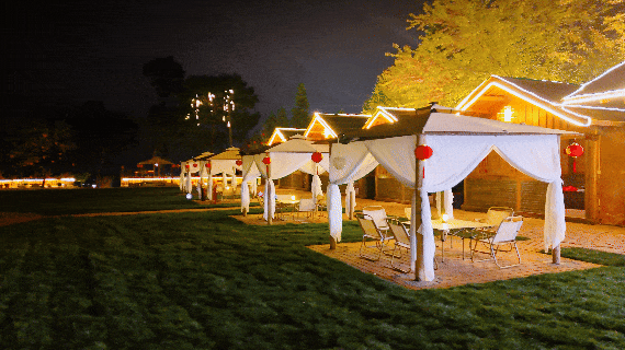 除了家庭游客,福禄岛也俘获了众多年轻人的青睐,成为好友小聚、单人放空的新据点。草坪旁的露营区域,几顶帐篷整齐排开,帐篷内,年轻人围坐畅谈、分享美食,轻声说笑间满是惬意,耐心等候店家备好围炉煮茶的器具与食材。