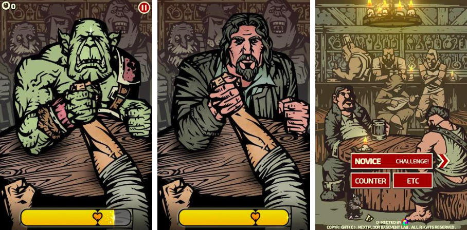 作为70年代最具代表性的力量对抗形式,掰手腕被转化为节奏紧凑的双人实时对抗玩法。游戏采用帧级响应操控,玩家需在倒计时内完成三次精准发力时机判断,失败不意味着结束——特殊状态触发“眩晕反制”机制,可打断对手连招并逆转局势。美漫风格角色建模配合低频震动反馈,强化肌肉绷紧与关节受力的真实体感。