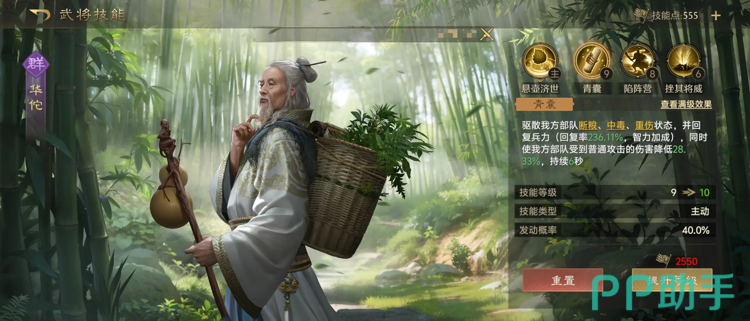 最后自然就是华佗,让阵容整体续航能力得到进一步提升,他的作用不仅仅是回复生命值,而且回复的量是特别充足的,能将队友直接从死亡边缘拉回来,而且还有驱散控制的作用,让队伍保持正常输出,因此他也是非常适合加入毒盾队的武将。